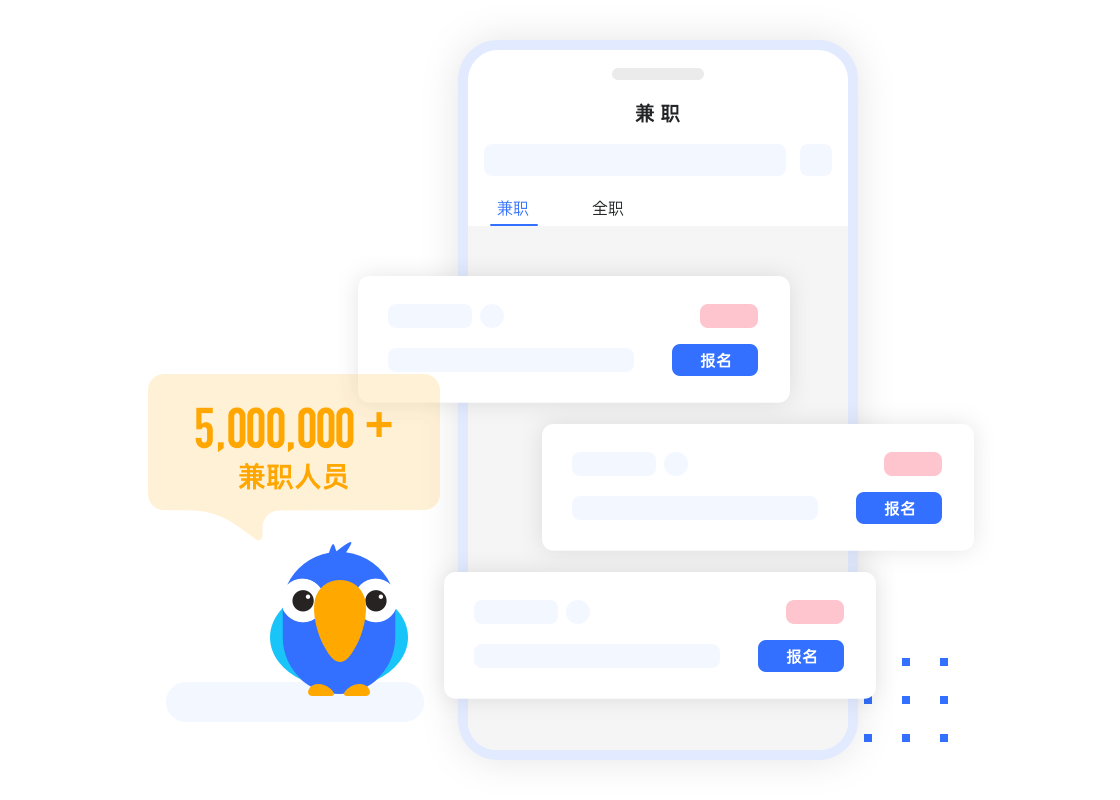 500万+的兼职人员,全国各大城市皆可快带上岗,分布在酒店、餐饮、零售等各大行业的熟练工种,以及兼职人员的相关工作记录,技能等。