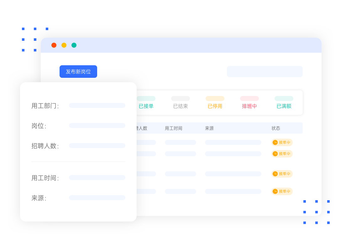 通过「招聘门户」实现招聘全职、兼职、找小时工等,快速上岗,全方位的为用工企业打造集兼职用工池、自有招聘门户一体化的用工系统。