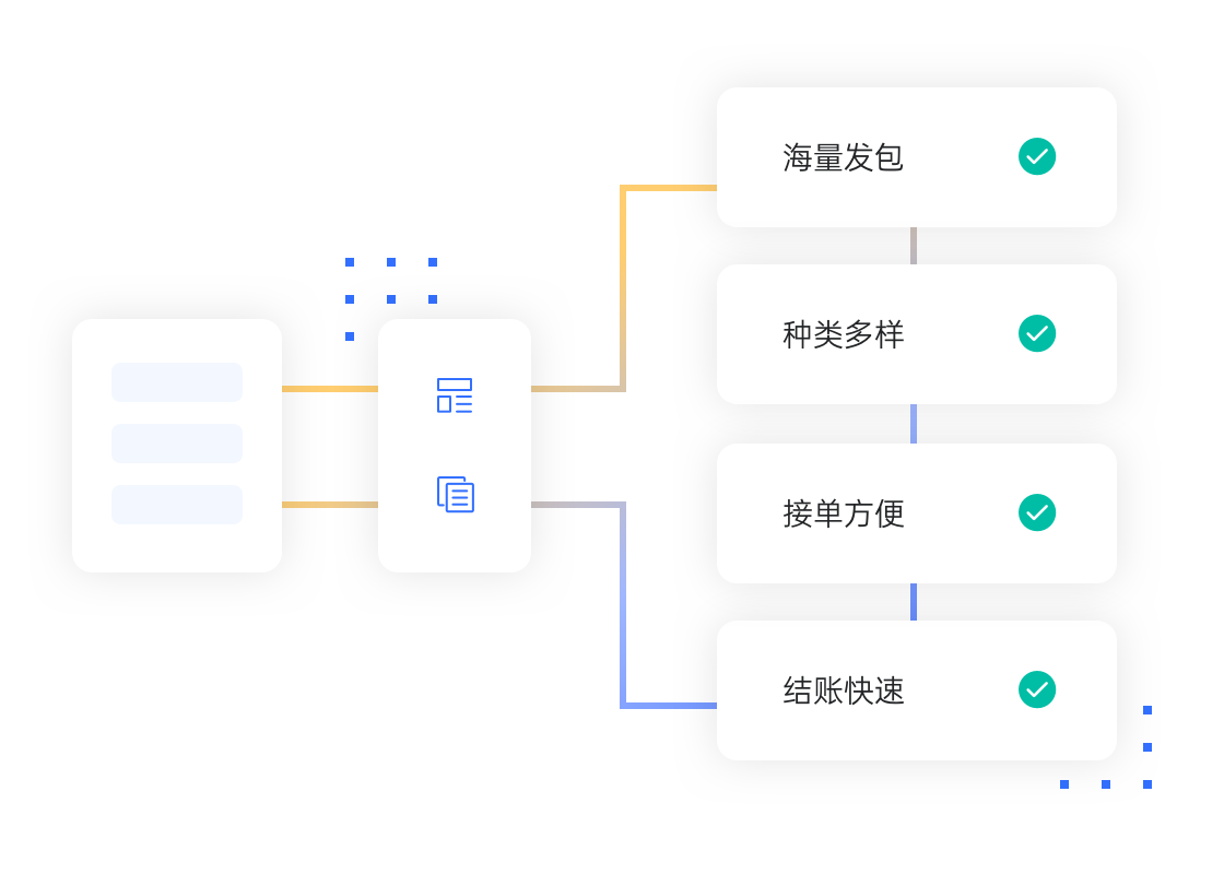 批量用工可一键发布给在线的10000余家中小劳务公司,劳务公司在线接单、排人、送工,以及派驻领队现场管理交付,在线精确对账及结算。