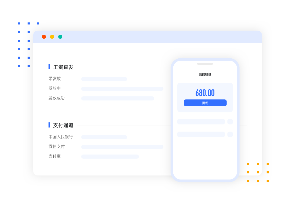 企业与劳务的费用对账、众包费用平台结算、企业直发工资给兼职工,兼职工在线提现到零钱的完整薪税结算闭环,为企业、劳务、兼职提供真正一体化的结算在线化、薪税合规化支付平台。